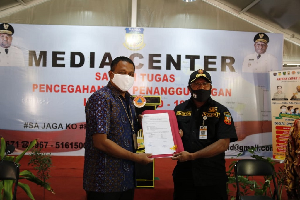 Keduanya diserahkan secara simbolis oleh Ketua Satgas Bencana BUMN Provinsi Papua John S. Yarangga dan diterima langsung oleh Ketua Harian Satgas Pencegahan dan Penanganan Covid-19 Provinsi Papua, Welliam R. Manderi. Kegiatan ini juga dihadiri oleh perwakilan RSUD Jayapura dan RSUD Abepura, serta disaksikan oleh Ibu Merry selaku perwakilan dari Ibu Trifena Tinal (Komisi IV DPR RI).