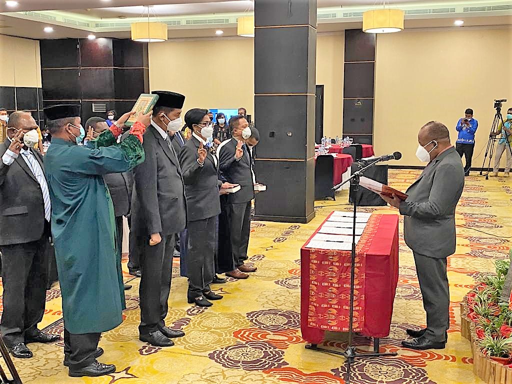 JAYAPURA- Penjabat Sekretaris Daerah Papua, Doren Wakerkwa melantik pengurus Dewan Teknologi Informasi dan Komunikasi (TIK) Daerah Provinsi Papua periode 2019-2024.