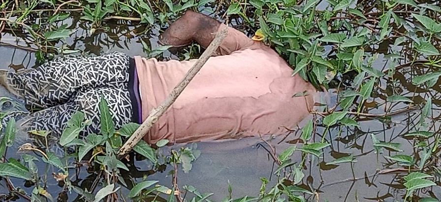 Jenazah saat ditemukan menggunakan celana pendek warna hitam corak putih, kaos warna pink, memakai topi rajut, posisi badan tengkurap dan kepala terbenam di dalam air.