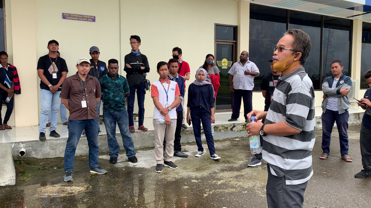 DEKAI – Kantor Unit Penyelengara Bandara Nop Goliat Dekai, baru-baru ini menggelar simulasi pelayanan penumpang masuk ke Dekai via bandara di ruang kedatangan terminal bandara.