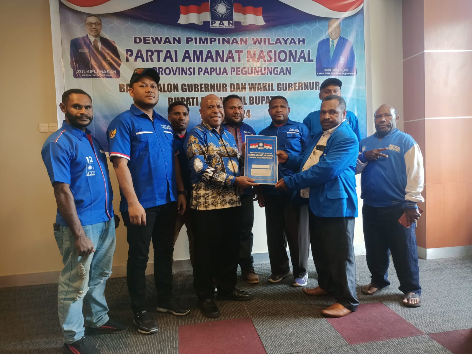 Sinut Busup saat menyerahkan berkas pendaftaran ke Panitia Pendaftaran Bakal Calon Kepala Daerah DPW PAN Papua Pegunungan