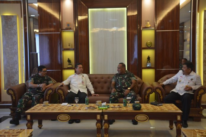 JAYAPURA-Guna mensukseskan Pekan Olahraga Nasional (PON) XX Tahun 2020 di Provinsi Papua, pejabat di lingkungan Kementerian Koordinator Bidang Politik, Hukum dan Keamanan (Menkopolhukam) Republik Indonesia (RI) melalukan pertemuan dengan Pangdam XVII/Cenderawasih, Mayjen TNI Herman Asaribab. Pertemuan dilakukan di Ruang Cycloop Makodam XVII/Cenderawasih, Kamis (27/2).