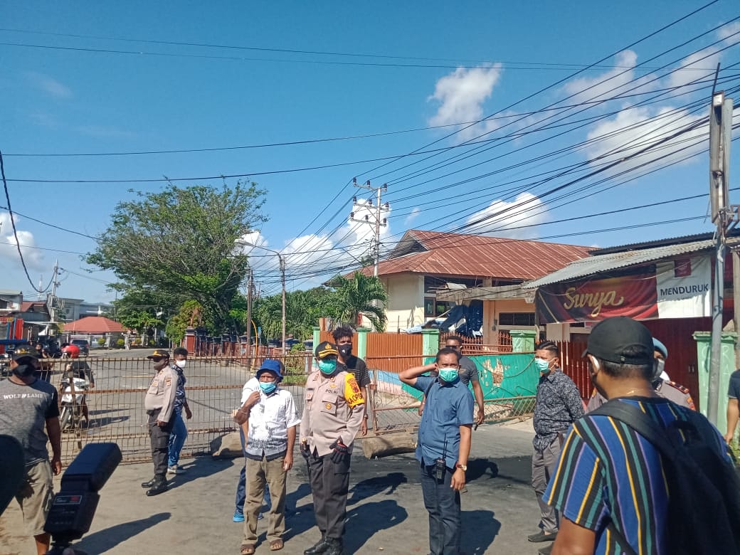 JAYAPURA – Sekelompok warga melakukan pemalangan Jalan Amphibi tepat di depan Restoran 10Derloin Hamadi, Distrik Jayapura Selatan, Selasa (26/5) pagi. Mereka tak terima Justinus meninggal saat disemprot petugas Covid-19.