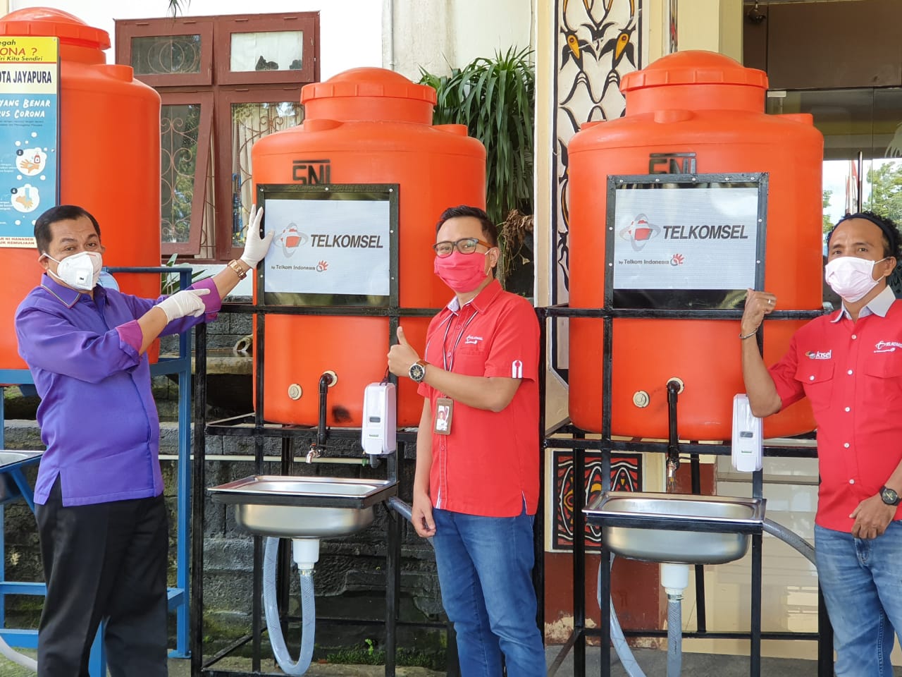 JAYAPURA– Dalam rangka memutus rantai penyebaran Covid-19, Telkomsel menyerahkan bantuan CSR berupa 2 unit tempat cuci tangan portable kepada Pemerintah Kota Jayapura.