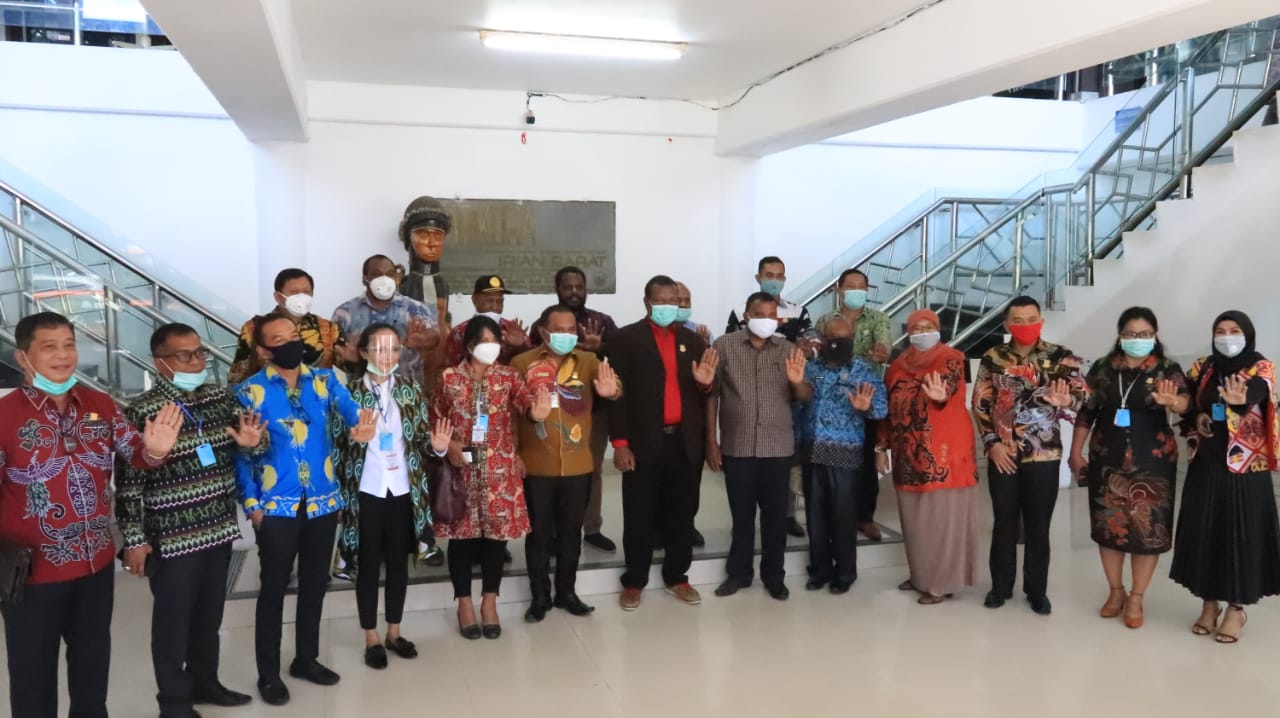 JAYAPURA-Panitia Khusus (Pansus) Covid-19 Dewan Perwakilan Rakyat Daerah (DPRD) Kota Jayapura, menggelar rapat koordinasi dengan pimpinan dan anggota Dewan Perwakilan Rakyat Papua (DPRP) di ruang Badan Anggaran (Banggar) DPRP, Kamis (18/6).