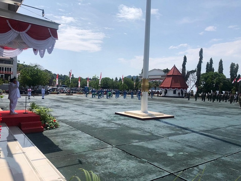 JAYAPURA-Pelaksanaan upacara HUT Kemerdekaan Republik Indonesia ke-75 di lapangan apel Pemerintah Provinsi (Pemprov) Papua berlangsung dengan mengedepankan protokol kesehatan, Senin (17/8).