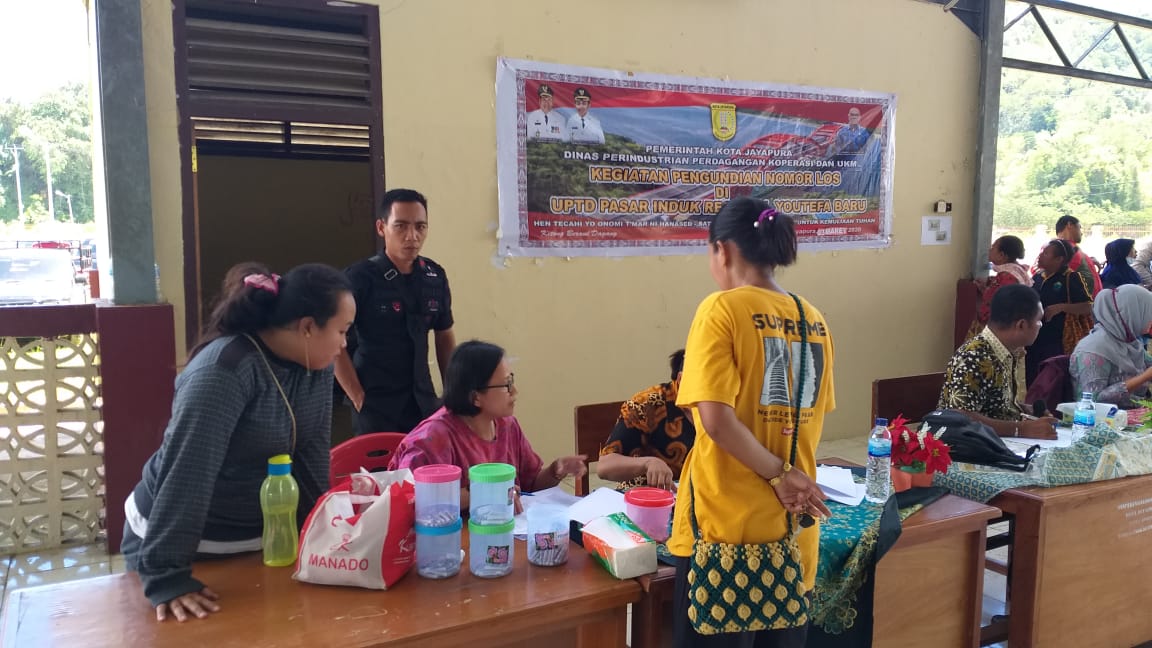 JAYAPURA– Dinas Perindustrian Perdagangan dan Koperasi Kota Jayapura melalui Unit Pelaksana Teknis Daerah ( UPTD) Pasar Induk Regional Youtefa Baru, kembali melakukan penarikan dan pencabutan undian di los pasar Induk Regional Youtefa Baru, Kamis (5/3)
