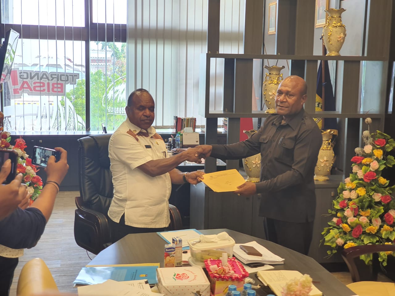 “Saya mewakili Gubernur Papua menyerahkan langsung SK ini kepada Pemerintah Kabupaten Sarmi. Selanjutnya, diserahkan kepada bupati dan DPRD setempat untuk melakukan pembahasan guna memutuskan calon pejabat yang baru,” kata Doren kepada sejumlah wartawan di ruang kerjanya.