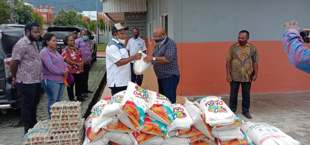JAYAPURA-Wakil Ketua I Dewan Perwakilan Rakyat Papua, Dr Yunus Wonda,MH memberikan bantuan untuk masyarakat di Kampung Donday, Distrik Waibu, Kabupaten Jayapura, Kamis (30/4)