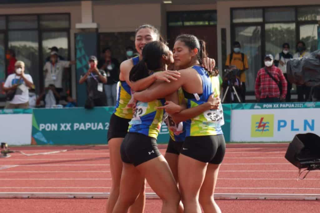 Sementara tim tuan rumah yang diisi Tri Yanerapa Ayo, Lushinta Burumi, Venska Wapai, Mergina Asyerem hanya berada di posisi keempat dengan catatan waktu 47.75 detik. (Humas PON XX Papua/NK)