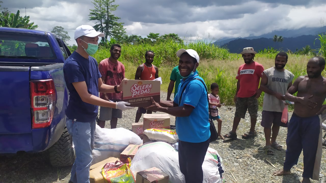 JAYAPURA-Mahasiswa asal Kabupaten Yahukimo yang berada di Sentani, Kabupaten Jayapura, Papua, mendapatkan bantuan dari para wartawan Kota Jayapura di tengah masa tanggap darurat Covid-19, Sabtu (25/4).